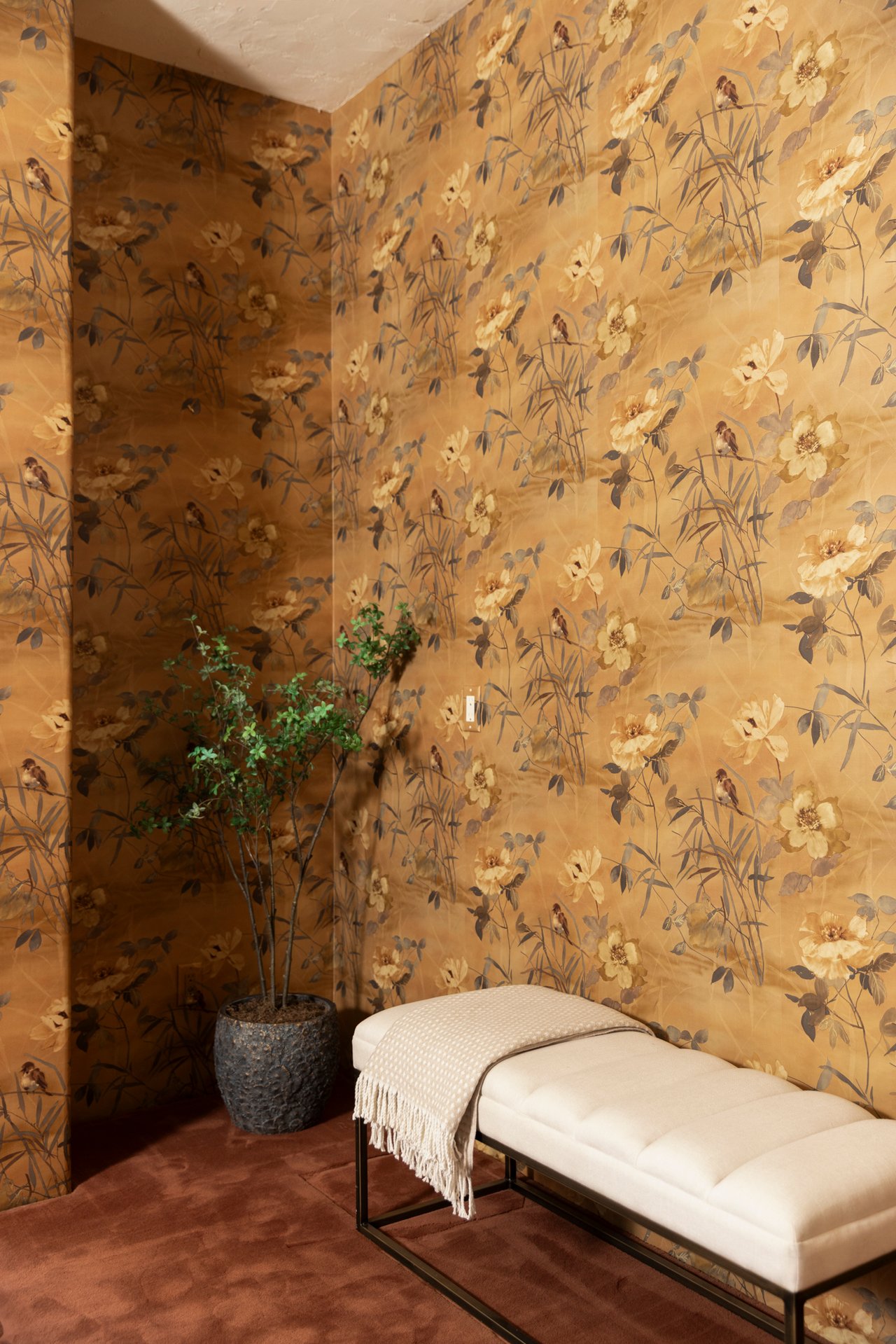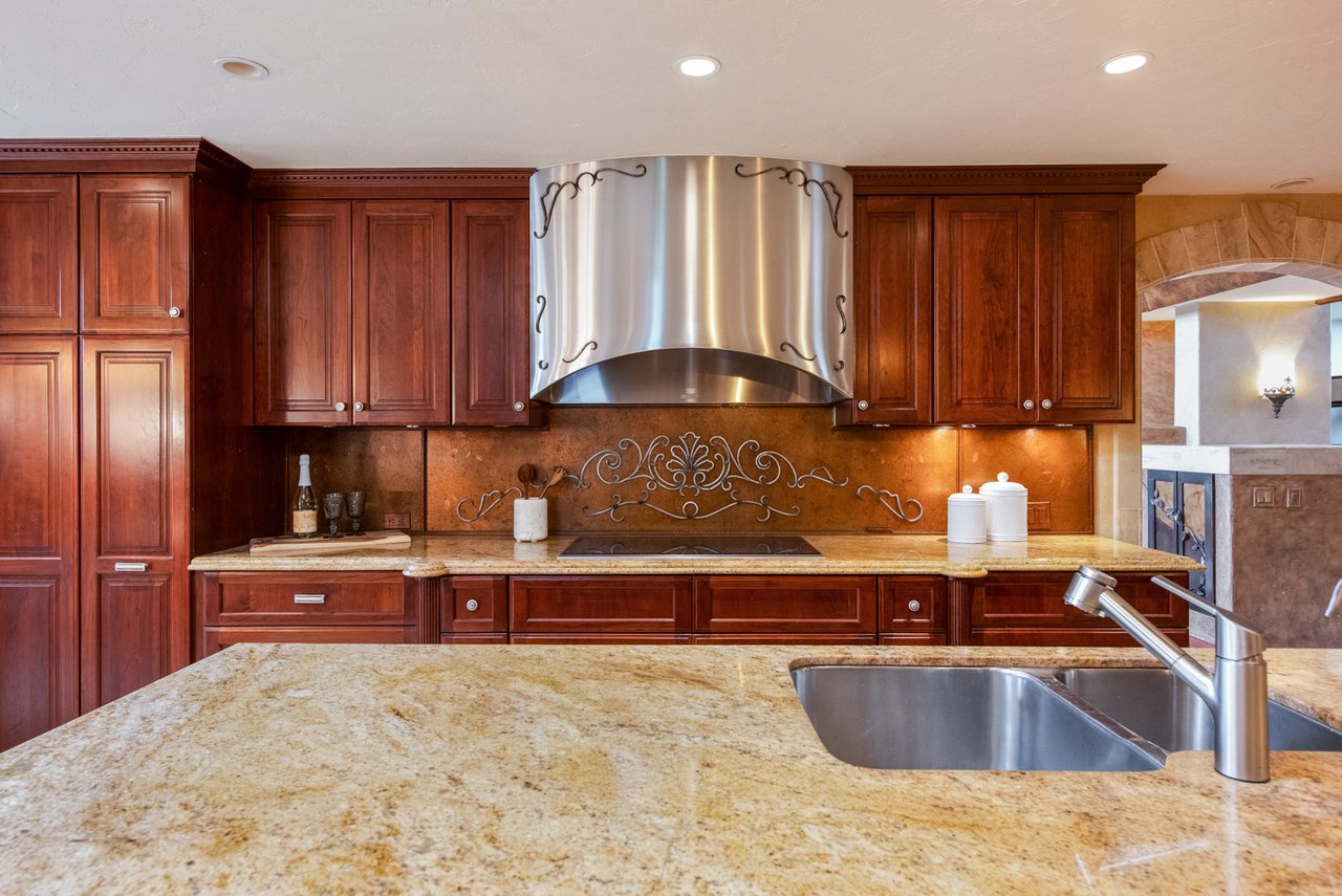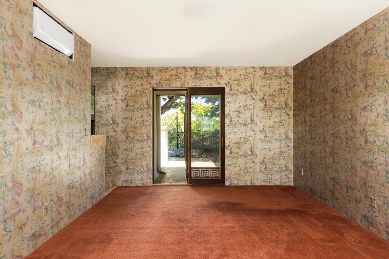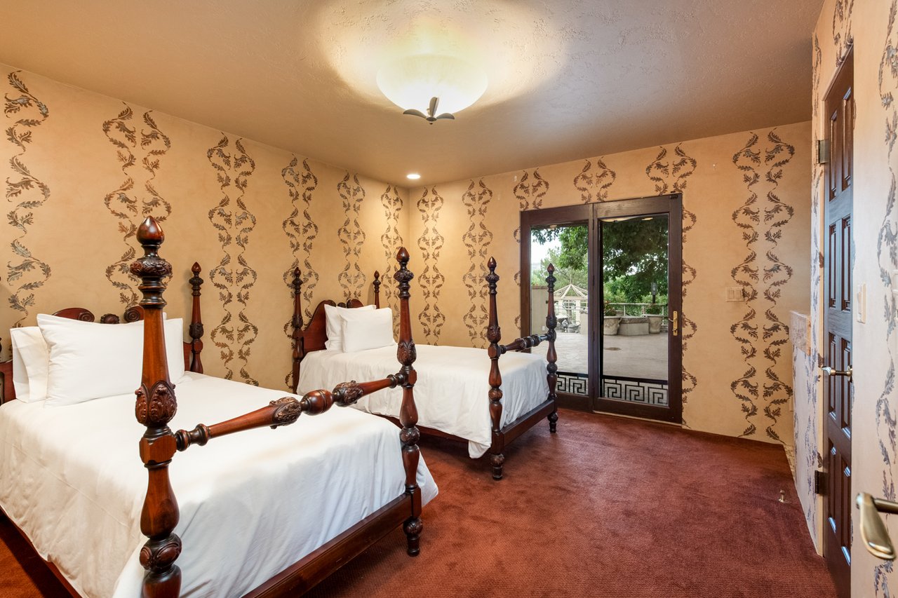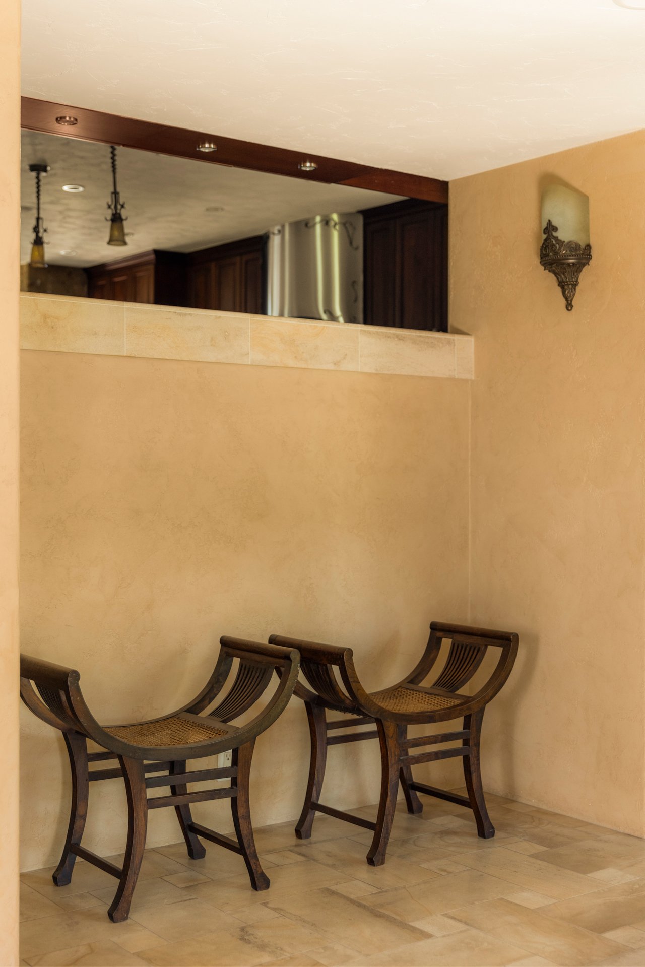A grand entrance through a private gate sets the tone for an enchanting experience. A stately, winding pathway framed by mature trees leads you to the residence, revealing meticulously manicured landscaping, captivating views of your own idyllic ponds, and awe-inspiring mountains. The home's elegant facade, featuring a stunning custom metalwork tree on the front door, commands attention.