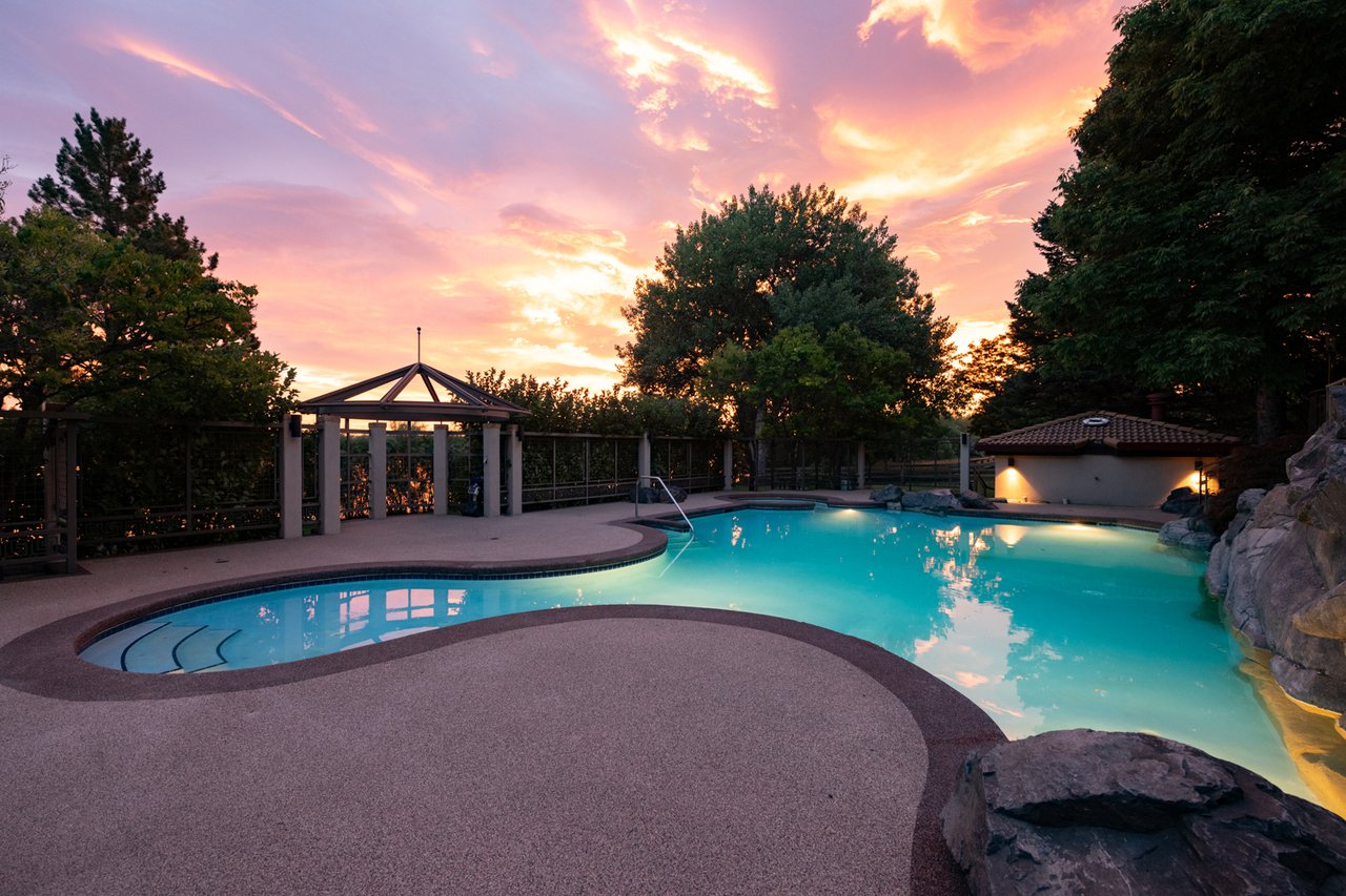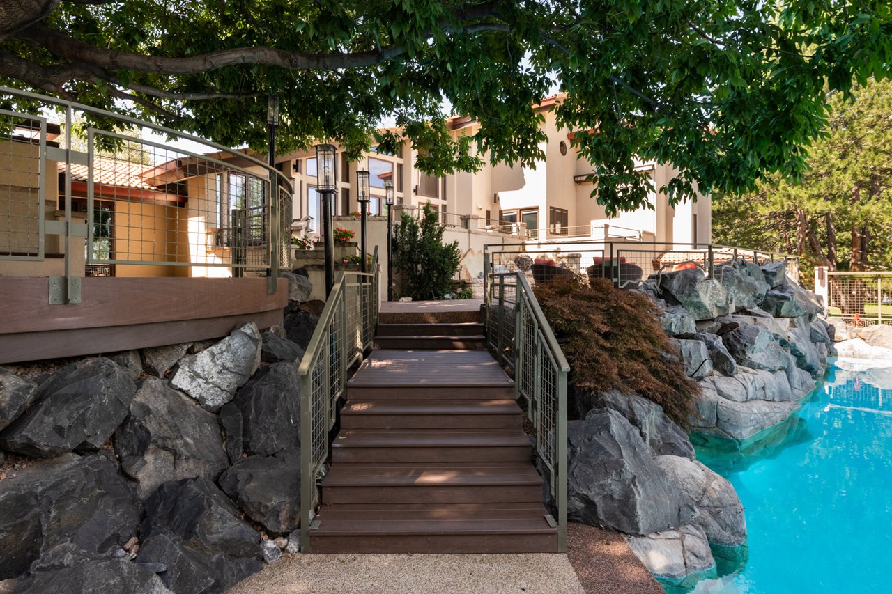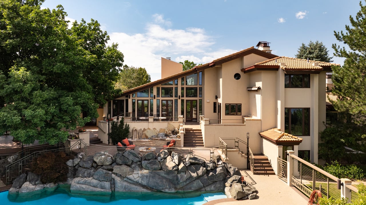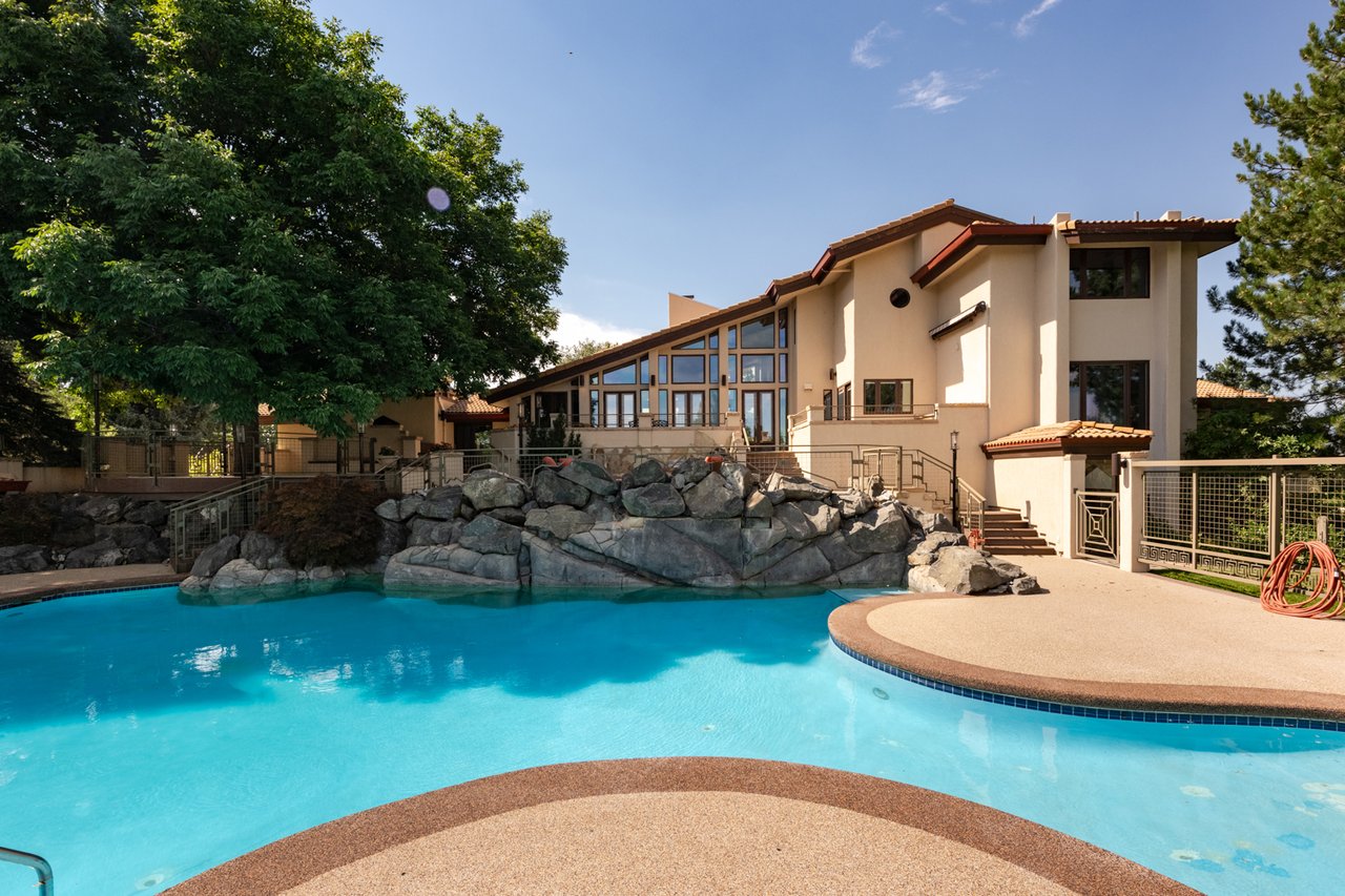 Inside, a sun-drenched glass atrium opens to dramatic vaulted ceilings, where towering windows frame sweeping views and blur the line between indoors and out. Double-sided stone fireplaces, a formal dining room embraced by lake and mountain vistas, a lofted primary retreat, and a great room designed for gatherings all add to the home’s allure. Curved walls and architecturally distinctive spaces create a captivating flow that elevates the residence beyond convention. Outdoors, an expansive pool becomes the centerpiece of a true backyard oasis, complemented by broad decks, a fire pit, and a full outdoor kitchen for memorable entertaining. The pool house, complete with a bathroom and shower, extends the experience for family and guests. On the lower level, a custom bar, private office, generous storage, and versatile spaces provide flexibility to suit every lifestyle.