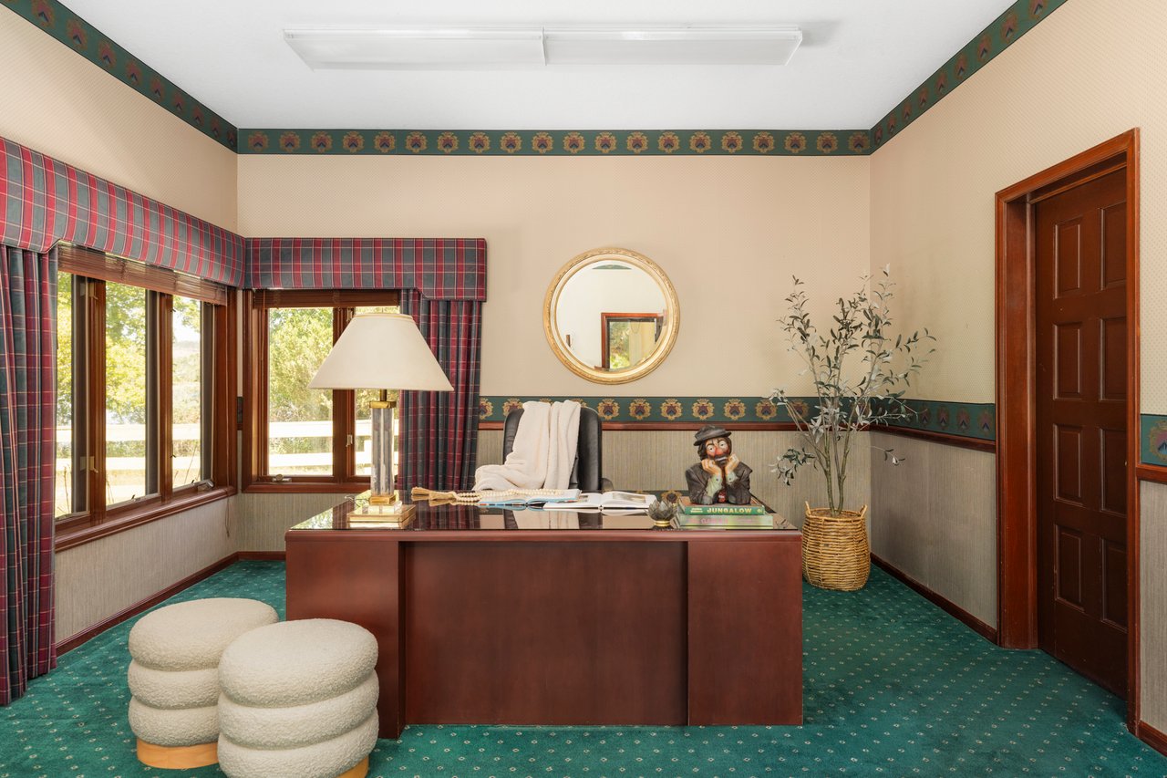 Beyond the main residence, this sweeping estate offers extraordinary potential. A second undeveloped parcel presents the opportunity to build a 5,500-square-foot luxury home—ideal for a family compound or guest retreat. Further along an orchard-lined path stands a multifunctional barn with an office, kitchen, full bath, and two stalls—well-suited for equestrian use, hobbies, or versatile retreat space. An adjoining workroom provides the perfect setting for fishing preparation, horse care, or tending to the 9.5-acre hay field, while an in-ground mechanical lift adds exceptional utility for automotive projects or equipment maintenance.”.